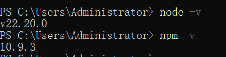 命令提示符: node -v,以及 npm -v