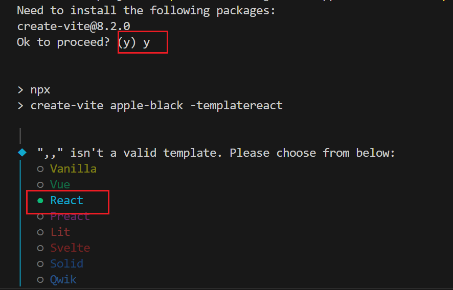 npm create vite@latest [project-name] -- -templatereact
